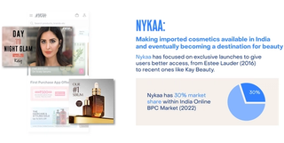 Over countless iterations, Nykaa perfected its value propositions for customers and curation was its silver bullet. Nykaa partnered with international brands like Esteè Lauder that had not set foot in India yet through Amazon and Flipkart in an inventory-led model. This operating model allowed Nykaa to establish the initial trust with the brands, since it bore the risk of the inventory, and trust with the customers who now have access to these brands and know that the products shipped are legitimate. This created differentiation in its early days and is an approach Nykaa has kept alive even to this day, by launching new brands such as Kay Beauty, exclusively on its platform - taking it to the 30% market share it holds today within the space.